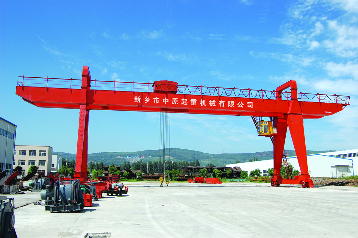 它的金屬結(jié)構(gòu)像門(mén)形框架,承載主梁下安裝兩條支腳,可以直接在地面的軌道上行走,主梁兩端可以具有外伸懸臂梁。
