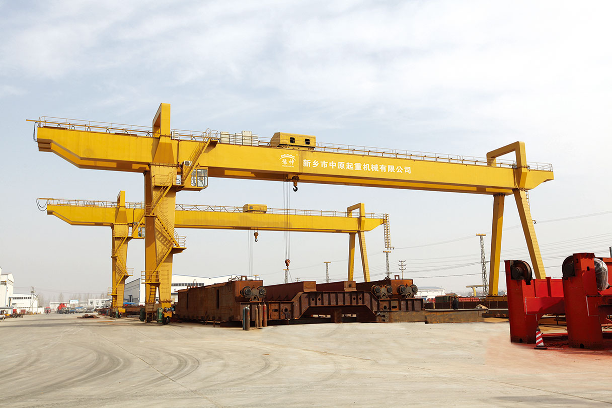 它的金屬結構像門形框架,承載主梁下安裝兩條支腳,可以直接在地面的軌道上行走,主梁兩端可以具有外伸懸臂梁。