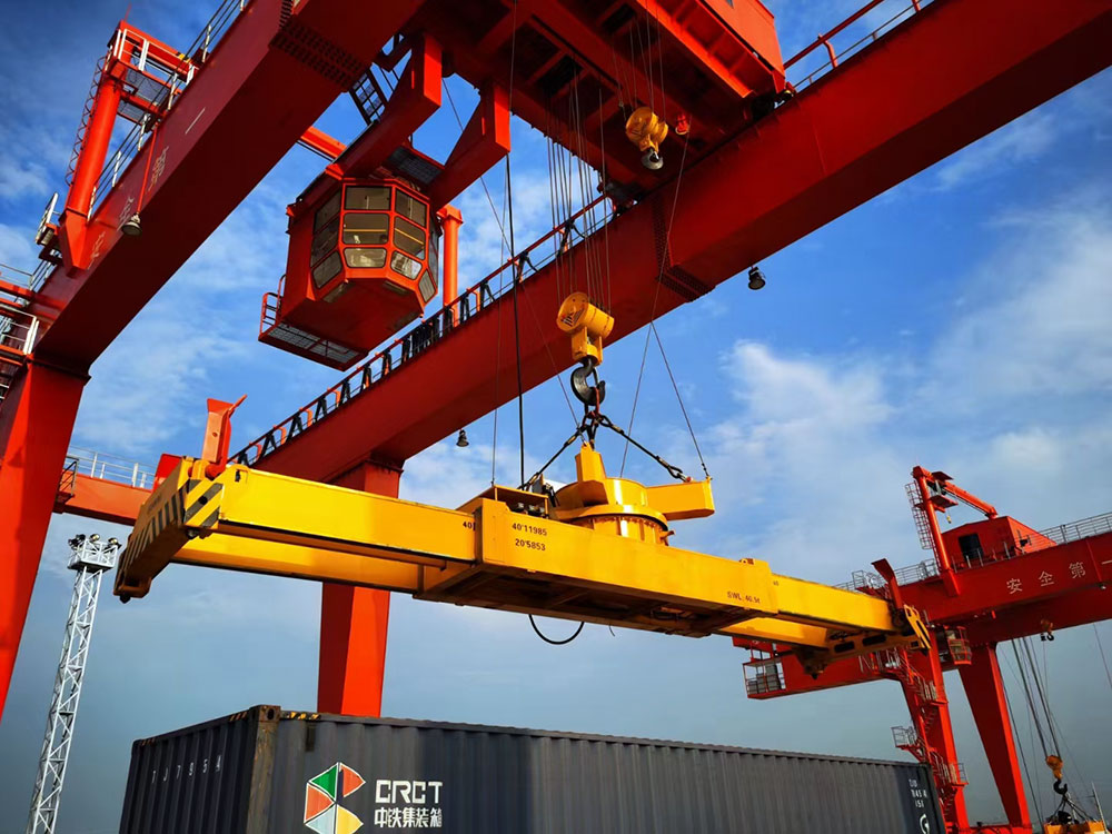 門式起重機(又稱龍門起重機)是橋架通過兩側(cè)支腿支撐在地面軌道上的橋架型起重機。在結(jié)構(gòu)上由門架、大車運行機構(gòu)、起重小車和電氣部分等組成。有的門式起重機只在一側(cè)有支腿,另一側(cè)支撐在廠房或棧橋上運行,稱作半門式起重機。門式起重機的門架上部橋架(含主梁和端梁)、支腿、下橫梁等部分構(gòu)成。為了擴大起重機作業(yè)范圍,主梁可以向一側(cè)或兩側(cè)伸出支腿以外,形成懸臂。也可采用帶臂架的起重小車,通過臂架的俯仰和旋轉(zhuǎn)擴大起重機作業(yè)范圍。
